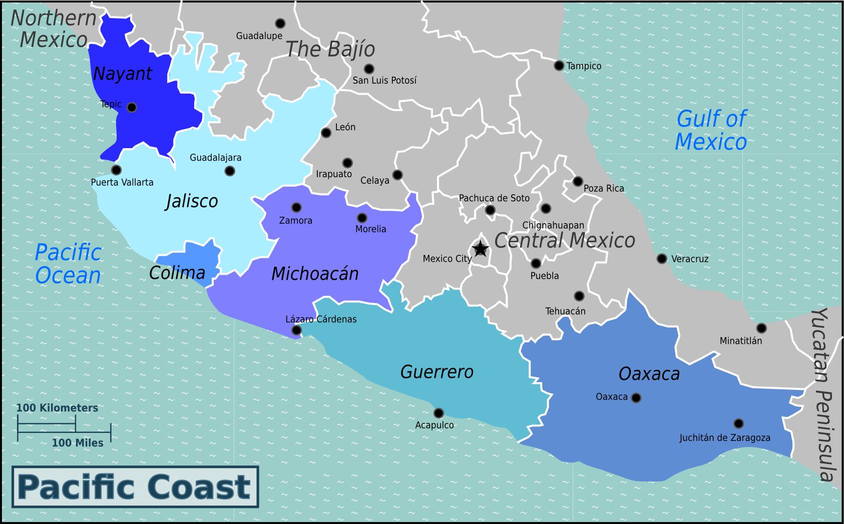 Mexiko pacific coast mapu